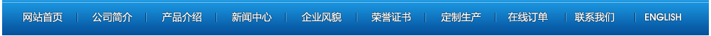 網(wǎng)站首頁 | 公司簡介 | 產(chǎn)品介紹 | 新聞中心 | 企業(yè)風(fēng)貌 | 榮譽證書 | 定制產(chǎn)品 | 在線訂單 | 聯(lián)系我們 | ENGLISH 【后臺管理】